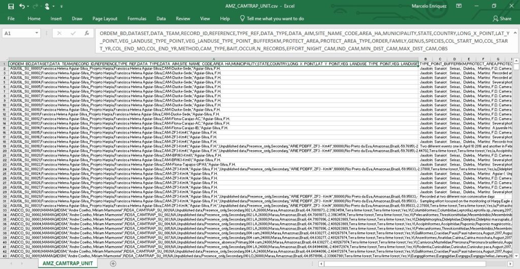 Es importante entender la información, qué significa cada dato, de acuerdo al título de la columna, de acuerdo a las referencias de los autores. Una vez entendidos los datos y columnas y para enfocarnos en el análisis exclusivo de las especies, hay que decidir qué columnas son necesarias. Esto tiene 2 propósitos: seleccionar solo los datos necesarios para el análisis y evitar la carga de datos no necesarios que pueden ralentizar la carga en el software de análisis.